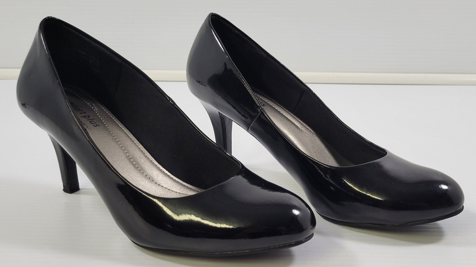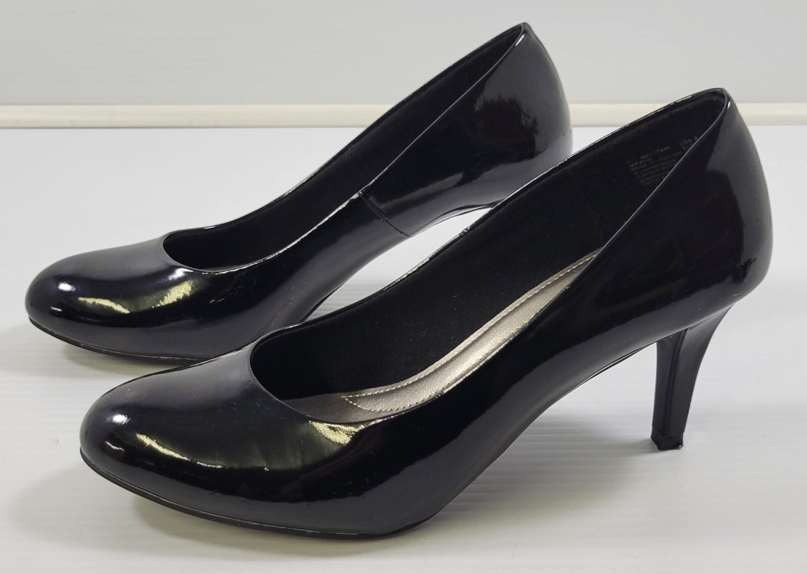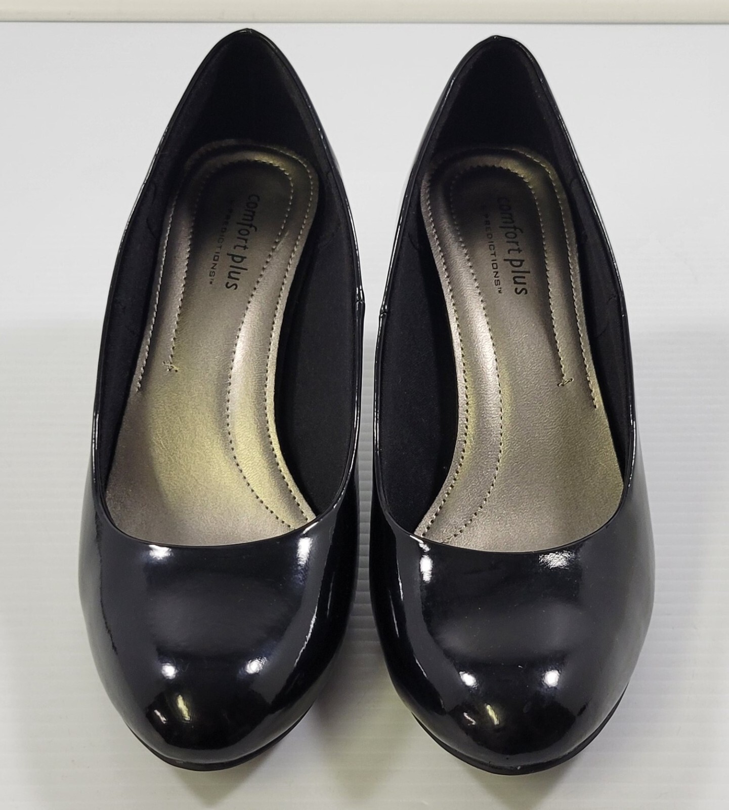 - BG) Woman Comfort Plus by Predictions Glossy Black Heels Shoes 8