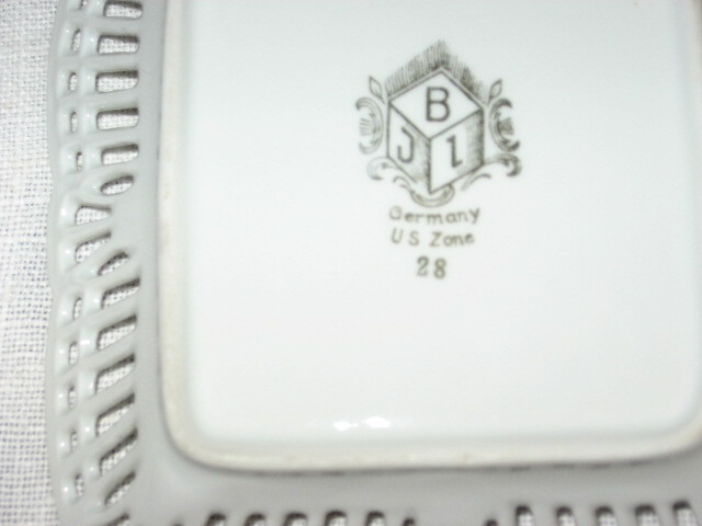 BJL Reticulated Square Porcelain Plate-Gold Trim -Germany US Zone- 1940's