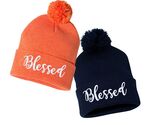 BLESSED Script Embroidered Cuffed POM Beanie Hat, Embroidered Gift, Winter Hat