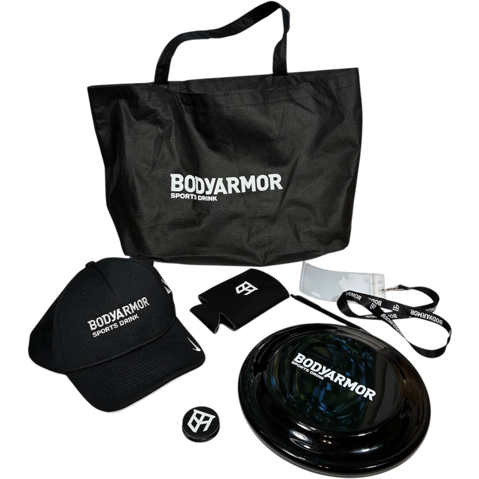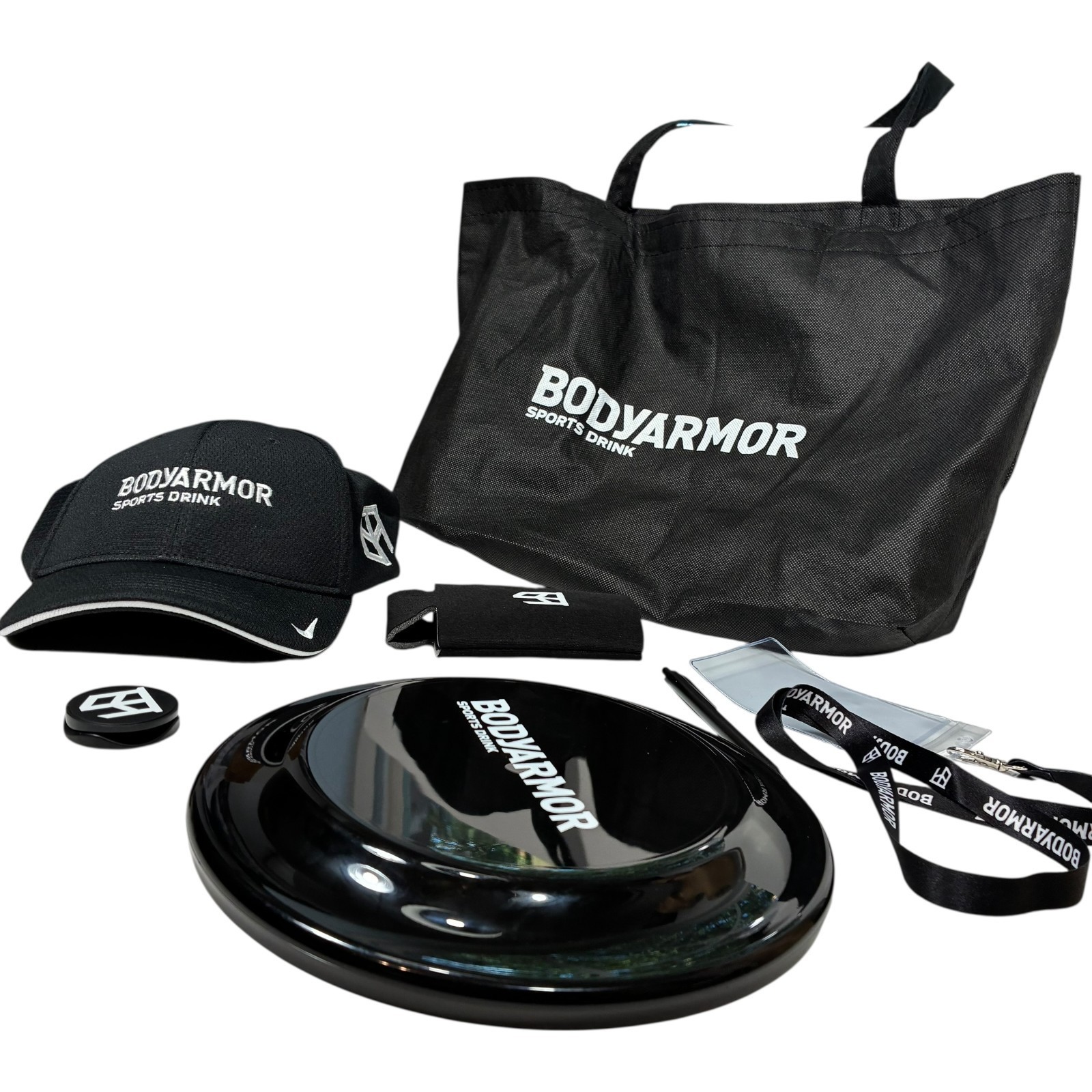 - BODYARMOR swag bag - Nike Swoosh Flex Hat+Flying Disc+Phone Grip+Coozie+Lanyard