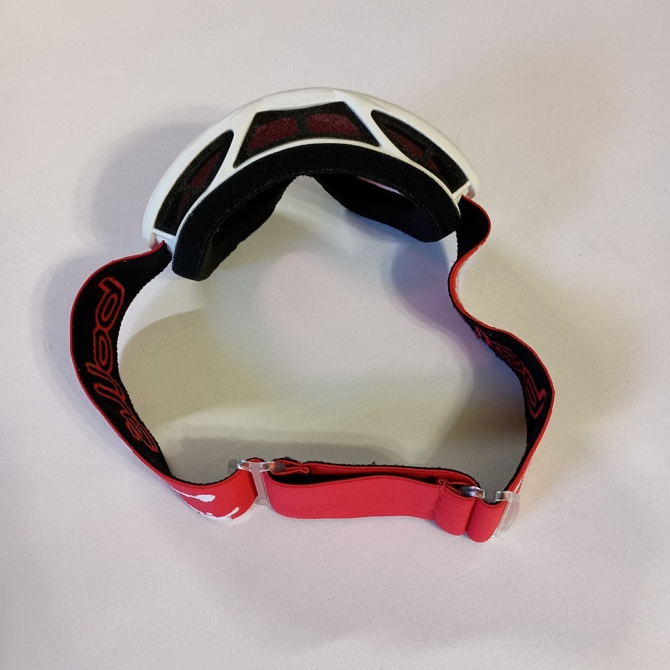 The Bolle ski and snowboard goggles in white frames with pink lenses are designed for youth and small adult skiers and snowboarders. With a sleek design and vibrant color scheme, these goggles are perfect for winter sports enthusiasts looking to stand out on the slopes. Made by a reputable brand like Bolle, these goggles offer performance and activity-specific features for snowboarding, ensuring a safe and comfortable experience in the snow. Normal wear, scuff marks.
