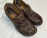 - BORN B.O.C. PEGGY Coffee Brown Tooled Leather Nursing Work Clogs BC6630 US 8.5