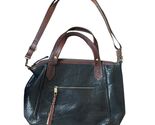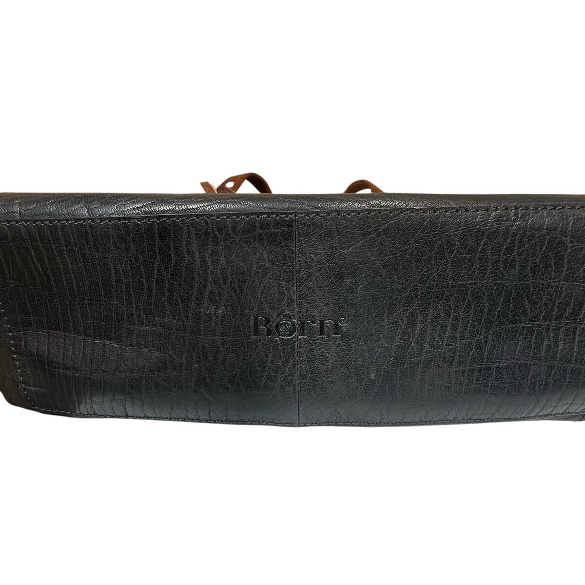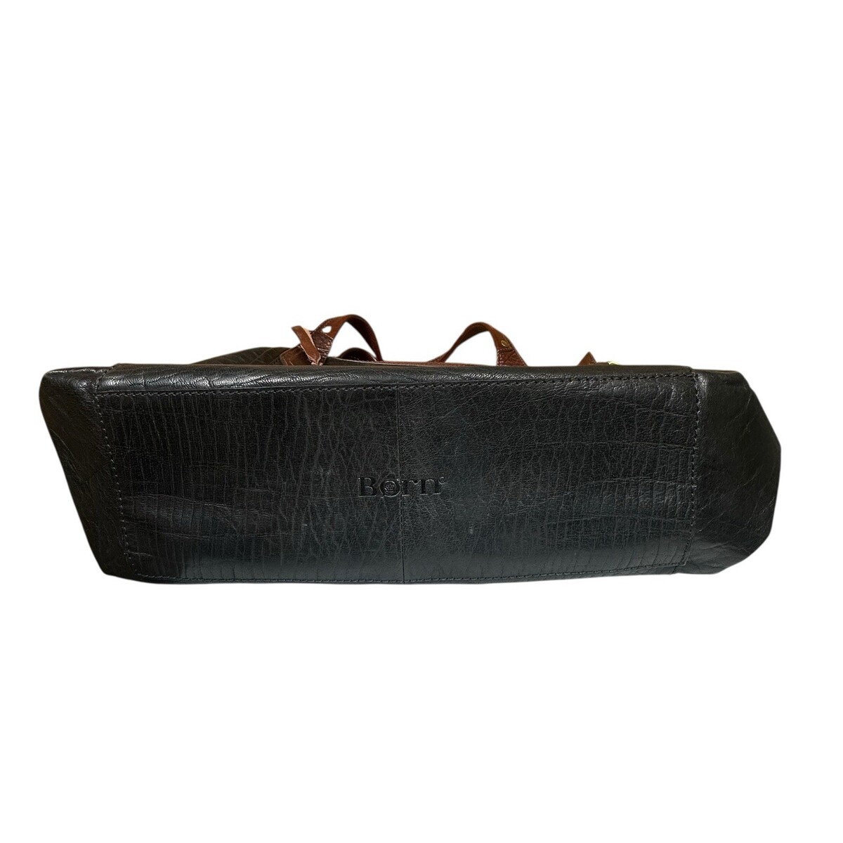- BORN Black Leather Brown Trim Satchel Handbag Purse Double & Long Handle Large