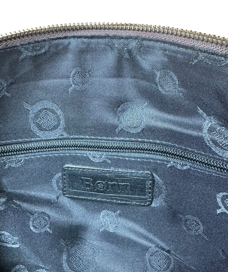 BORN Black Leather Brown Trim Satchel Handbag Purse Double & Long Handle Large