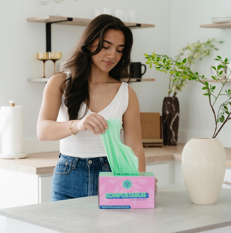 Puncture/Heat Resistant with Strong, Easy-Tie Handles: Engineered to handle tough kitchen waste without tearing or leaking, these handle tie, eco-friendly trash bags are built for dependable performance. Kompostables are thicker and more heat resistant than other large compost bags, which often melt when in contact with warm food.