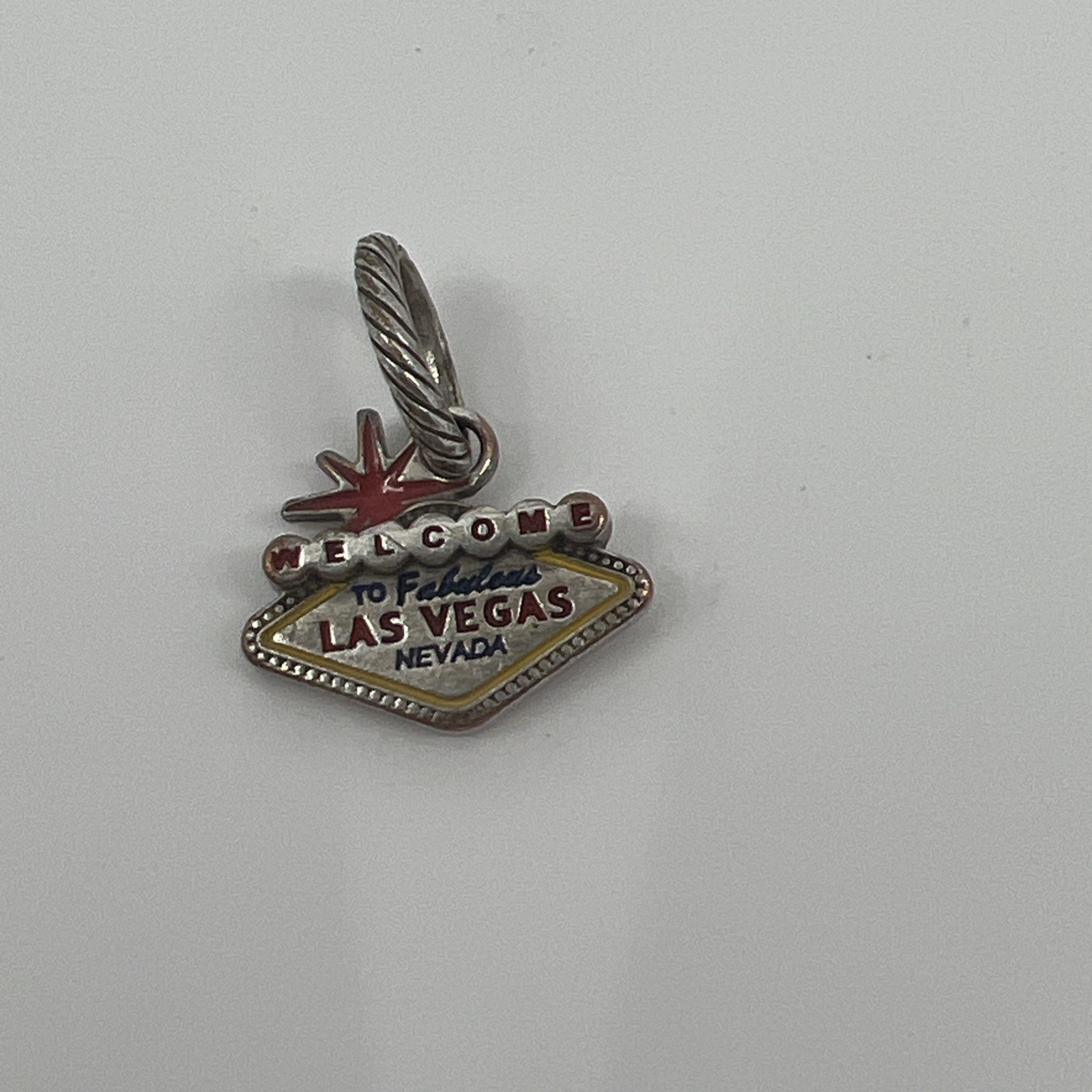 - BRIGHTON “Welcome Las Vegas” Dangle Sign Charm Silver Tone Enamel Travel Nevada