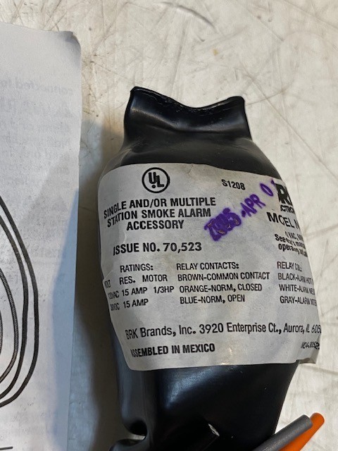 - BRK Electronics Model RM3 Accessory Relay 120V AC 60Hz .02AMP