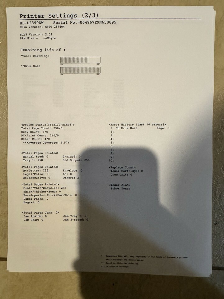 - BROTHER HL-L2390DW Wireless Monochrome All-In-One Laser Printer 258 Page Count