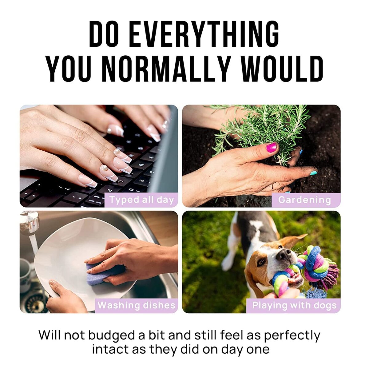 Do Everything You Normally Would: All BTArtbox glue on nails offer feature protective building gel finish so that you are able to do everything you normally would, such as typing, gardening, houseworking or playing with your pet. They will not budged a bit and still feel as perfectly intact as they did on day one