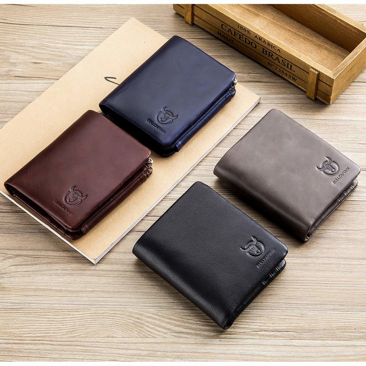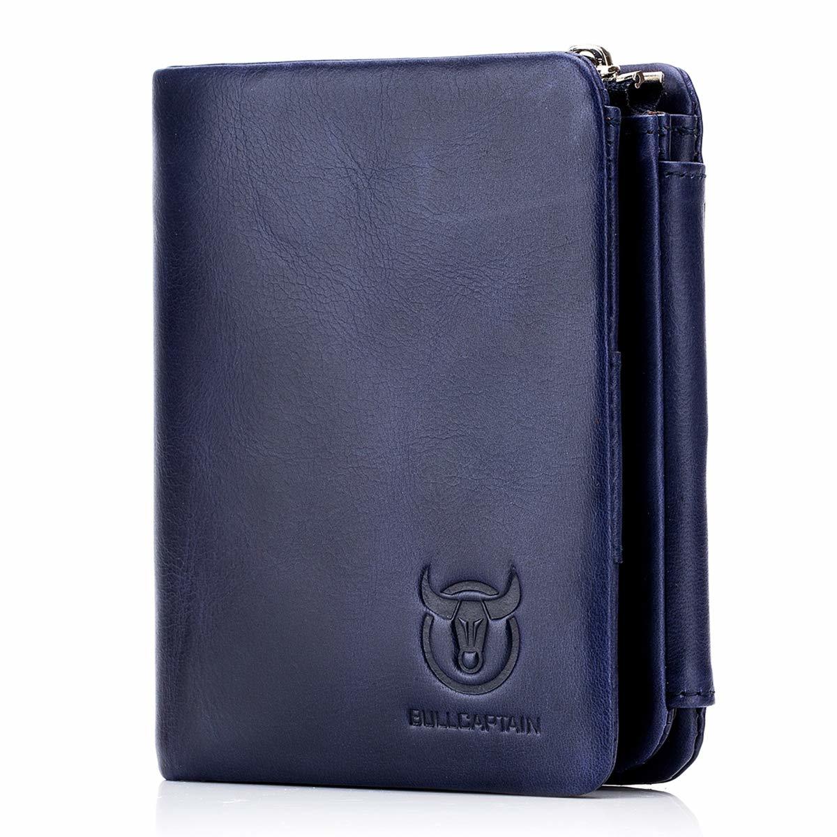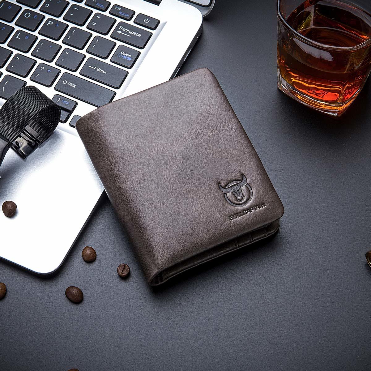 - BULLCAPTAIN Leather Men's Trifold Wallet with Coin Pocket Business Purse