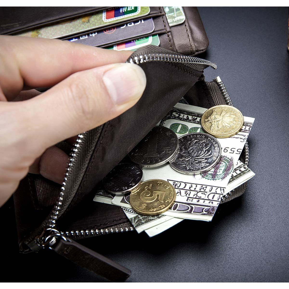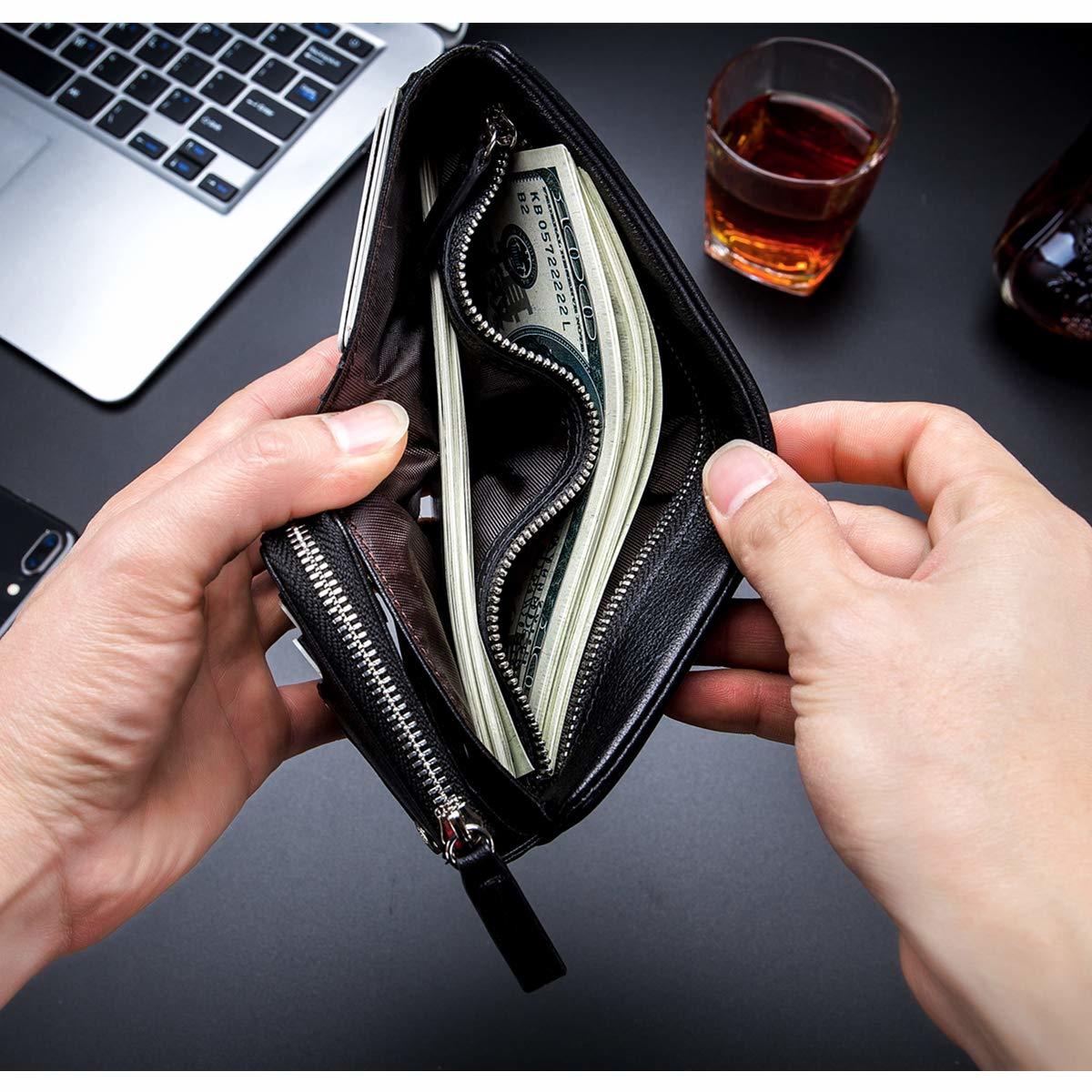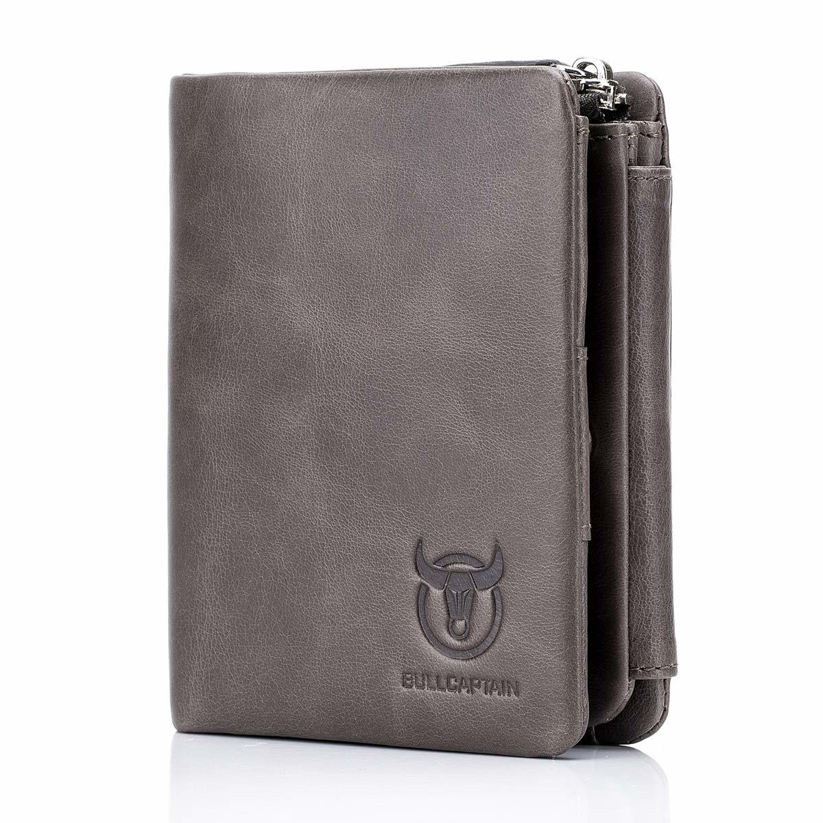 - BULLCAPTAIN Leather Men's Trifold Wallet with Coin Pocket Business Purse