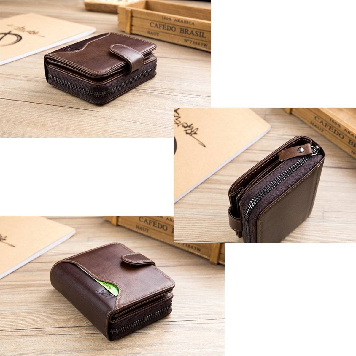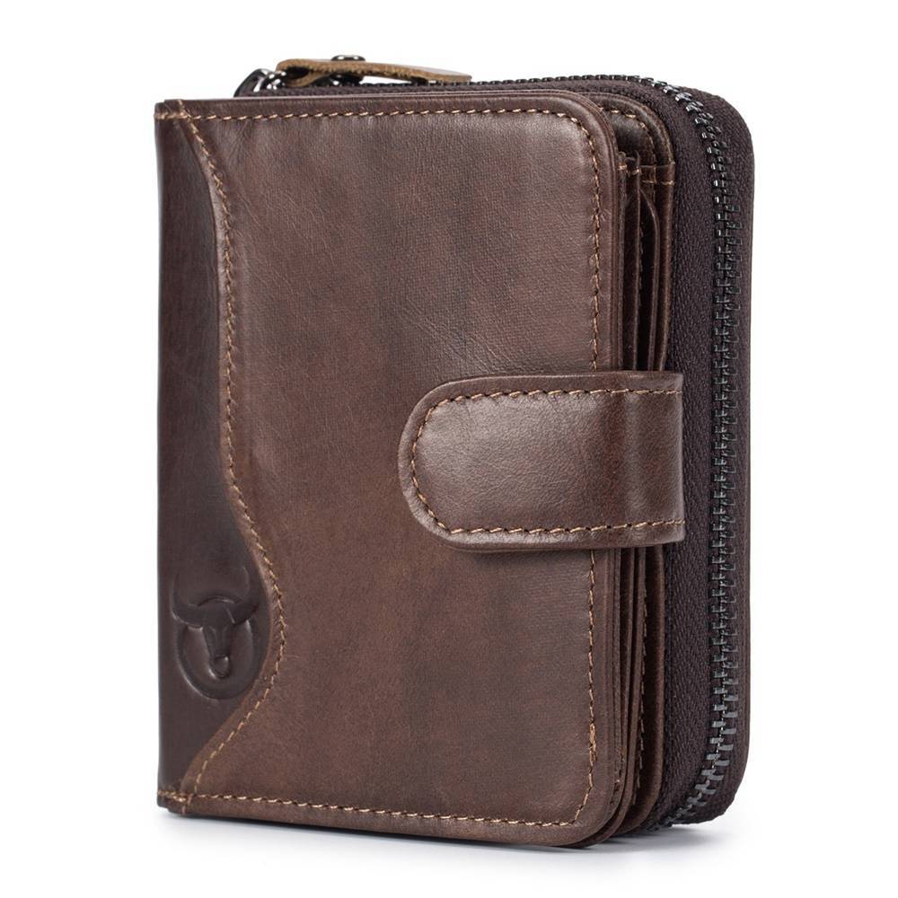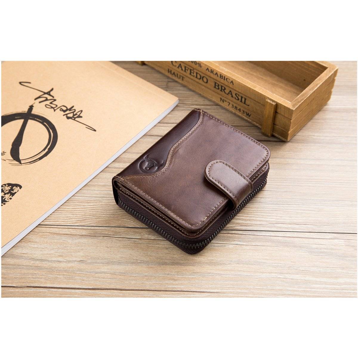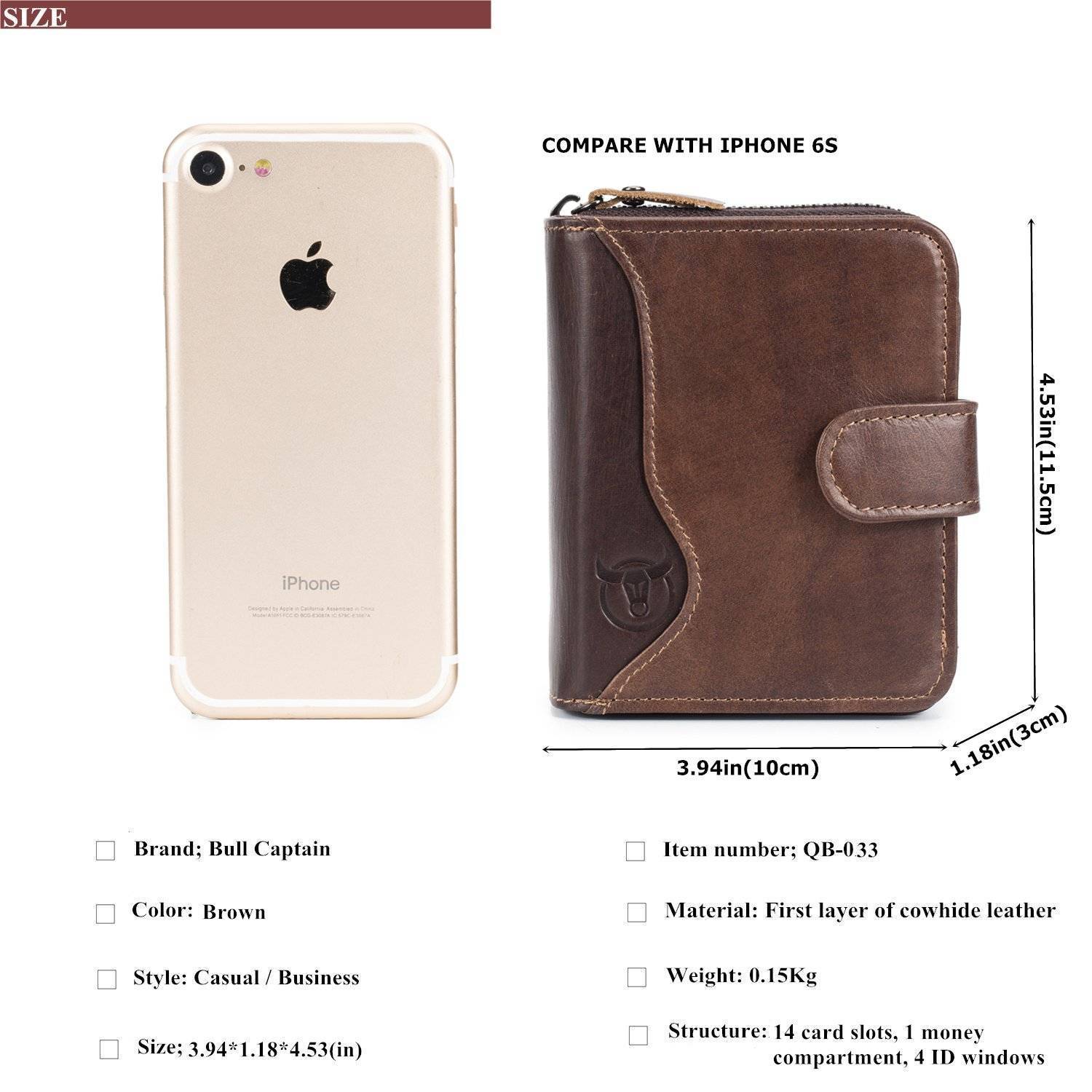 - BULLCAPTAIN Leather Zipper Wallet 14 Credit Card Holder with 4 ID Windows
