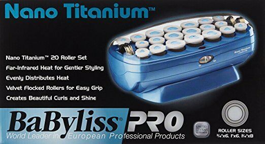 Babyliss pro nano titanium professional 20 roller hairsetter is an exceptional conductor of heat. Maintains stability in ultra-high temperatures. Heats retention, weight and smoothness help reduce time. It yeilds maximum far-infrared, heat penetrating the hair from within for faster styling with less damage.20 velvety flocked rollers:6 small ("), 6 medium (1") and 8 large (1OE"). 12 velvety flocked jumbo rollers (1-1/2").20 butterfly clips and 20 color-coded metal clips