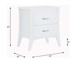 Features: Rectangular Night Table Storage: 2 Drawerx Wooden Case-Frame Wooden Tapered Leg Drawer: Glide Side Metal (Ext. 3/4), Dovetail Not Included, Fully Finished Inside (Felt Lined Not Included), Safety Stop Included, Manual-Close Set Includes: One (1) Accent Table