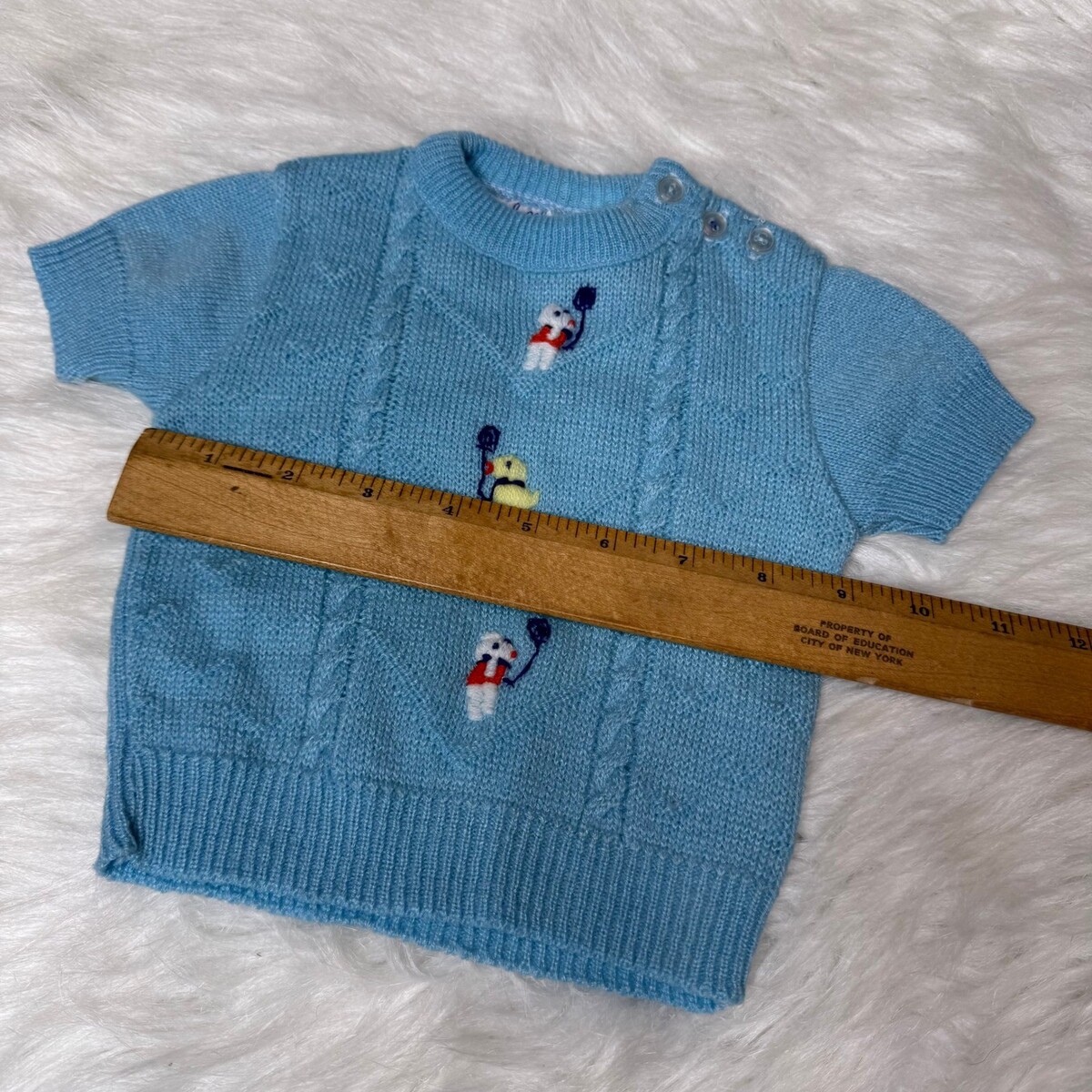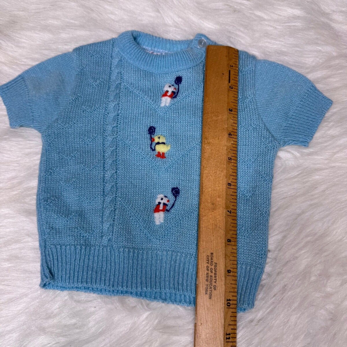 - Baby Blue Knit Sweater Short Sleeve Duck Applique 6-9 Months Boys Girls