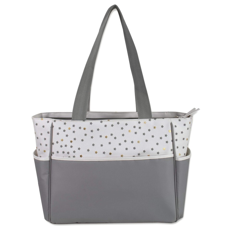 - Baby Essentials Diaper Bag Tote 5PC Set Grey Cream Sun Moon Stars