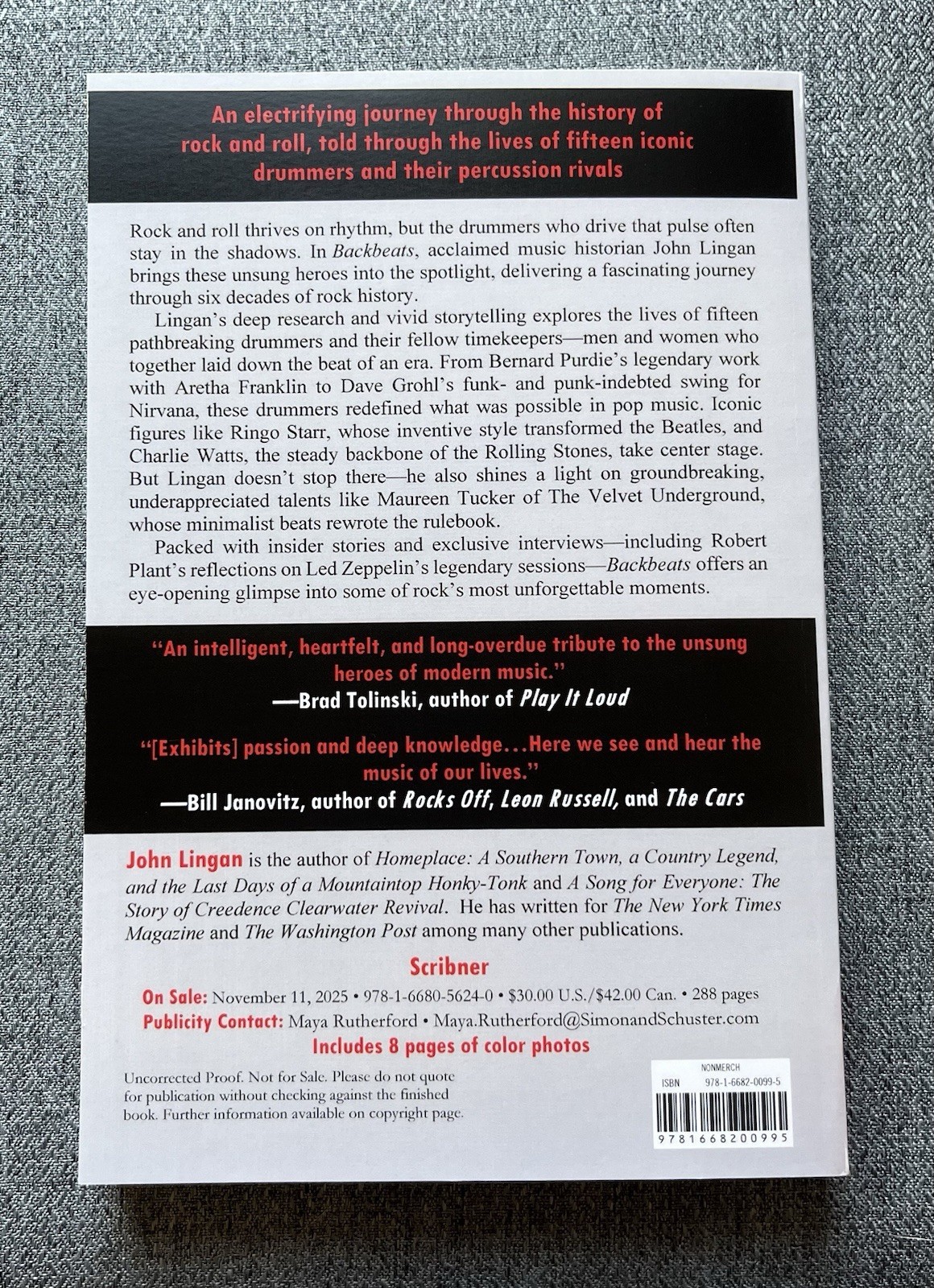 - Backbeats: A History of Rock & Roll in 15 Drummers - John Lingan Paperback ARC