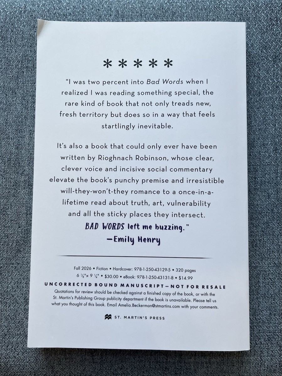 Bad Words ARC by Rioghnach Robinson, Unread, Fall 2026 Romance Paperback