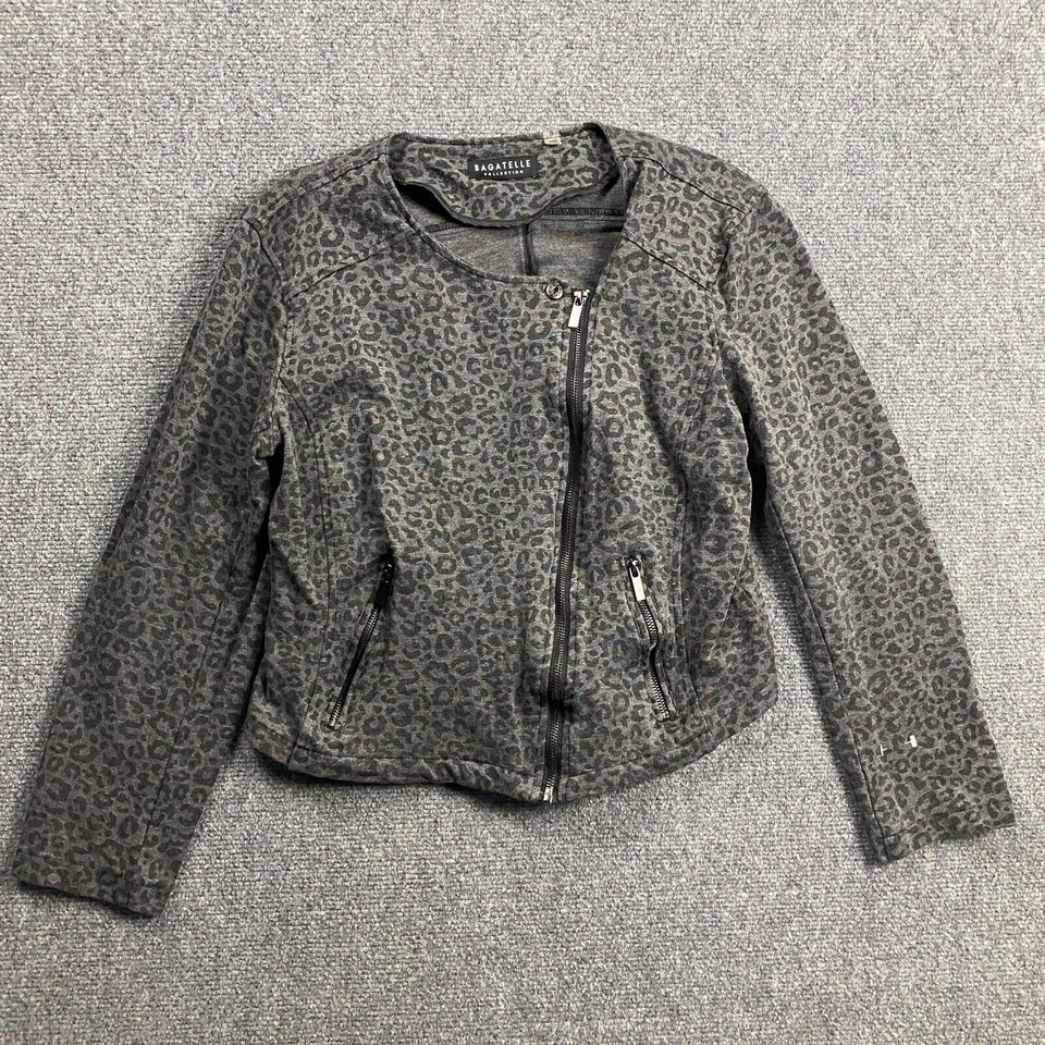 - Bagatelle Moto Jacket Women's Small Gray Full Zip Cheetah Print Adults S
