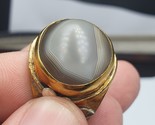 Bague en laiton incrusté d'argent avec pierre centrale agate oeil tibétain...