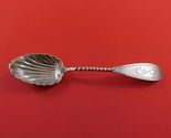 Coin silver Ice Cream Spoon, engine turned, twisted handle with shell bowl 5 3/8" by Bailey and Co. It is monogrammed (monos vary) and is in excellent condition.