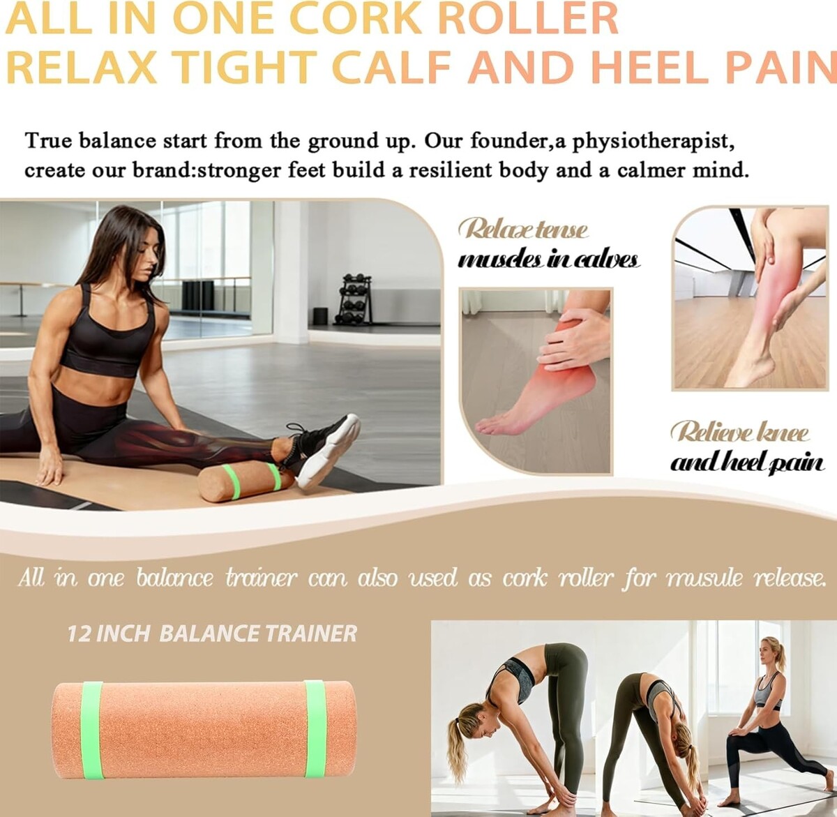 Balance trainer, cork balance board, plantar fasciitis relief, foot ankle strengthener, stability trainer, bunions arch relief, calf stretcher, foot pain relief, ankle rehabilitation, physical therapy equipment, balance board cork, fall prevention, foot exercise, Achilles tendinitis, proprioception training, foot strength equipment, portable balance trainer
