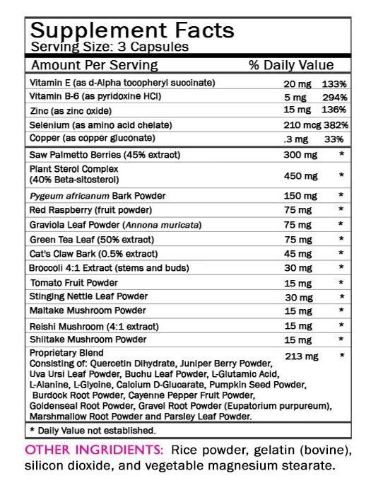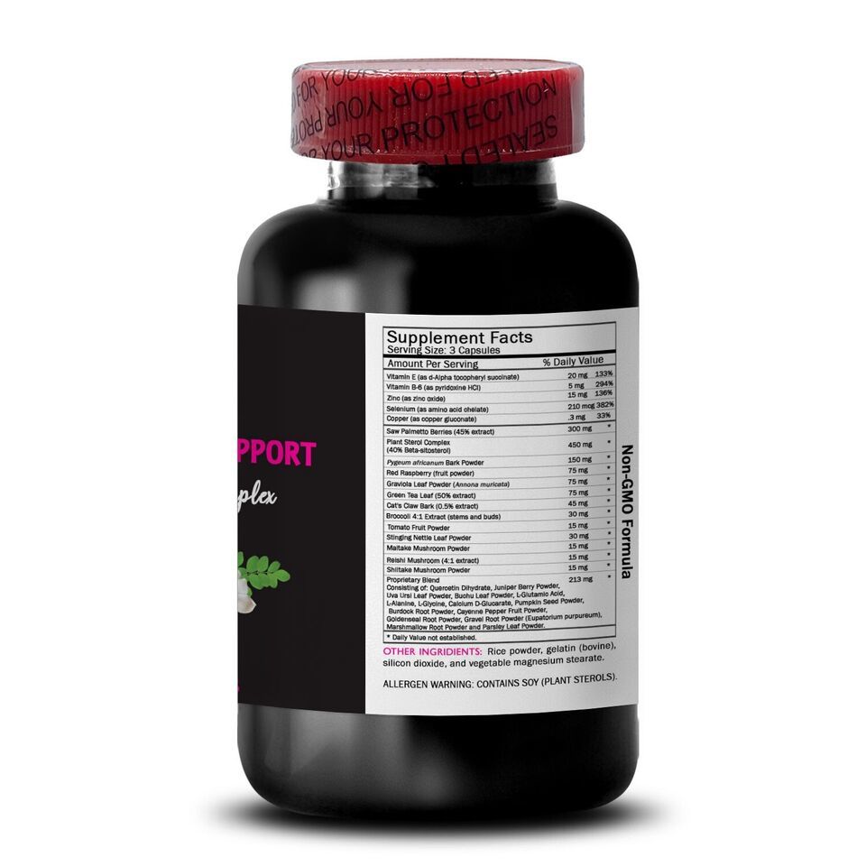 PROSTATE SUPPORT ADVANCED COMPLEX: Our powerful dietary supplement designed to support a balanced internal environment and promote optimal well-being. This advanced formula combines the natural benefits of Saw Palmetto Berries, Plant Sterol Complex, Pygeum africanum Bark Powder, Red Raspberry, Graviola, Leaf Powder, Green Tea Leaf, Cat's Claw Bark, Broccoli 4:1 Extract, Tomato Fruit Powder, Stinging Nettle Leaf Powder, Maitake Mushroom Powder, Reishi Mushroom, Shiitake Mushroom Powder with a blend of potent ingredients known for their properties.