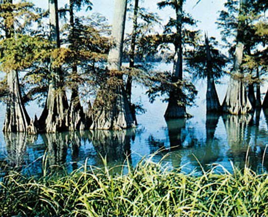 Bald cypresses have very important roles in the wild. Since they tend to grow along rivers and in wetlands, they are excellent at soaking up floodwaters and preventing erosion. They also trap pollutants and prevent them from spreading. Frogs, toads, and salamanders use bald cypress swamps as breeding grounds. Wood ducks nest in hollow trunks, catfish spawn in the submerged hollow logs, and raptors like bald eagles nest in the treetops.