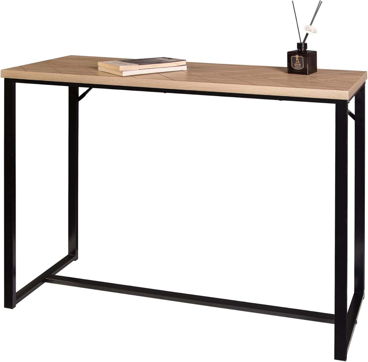 Bali Coastal Modern Console Table - Natural Wood Top & Black Metal Legs