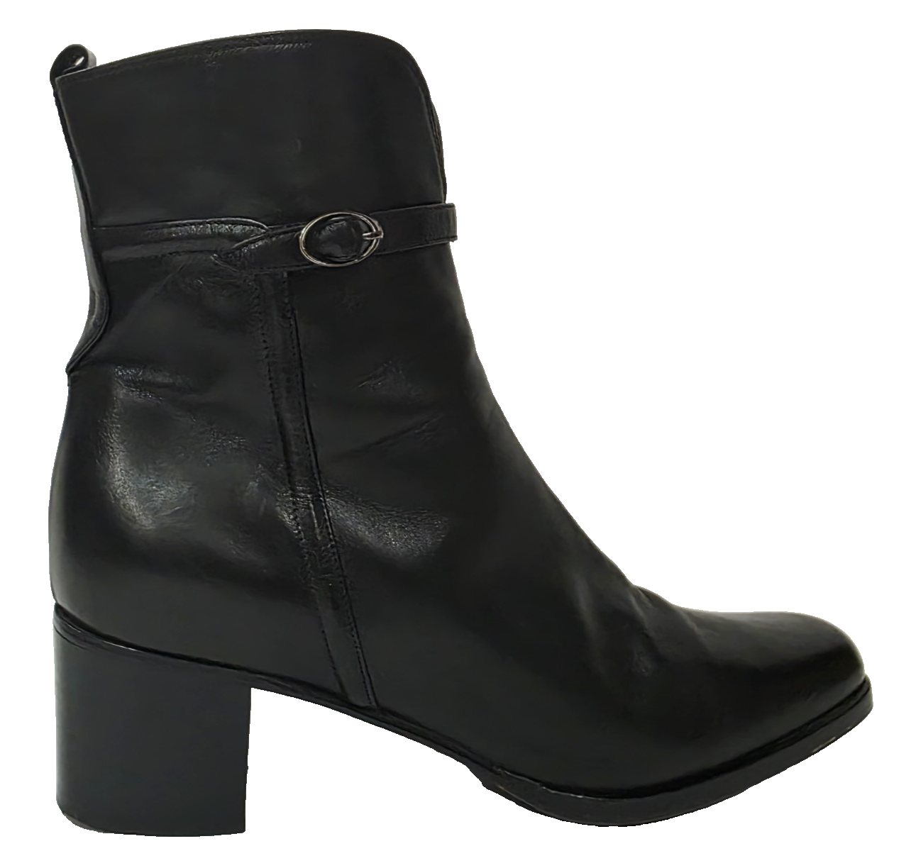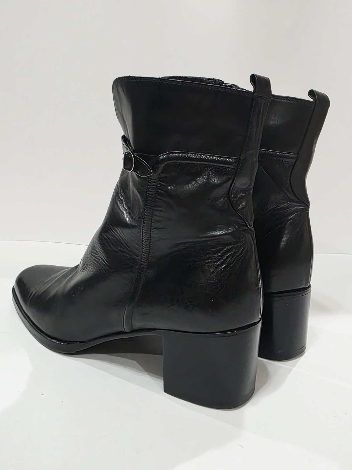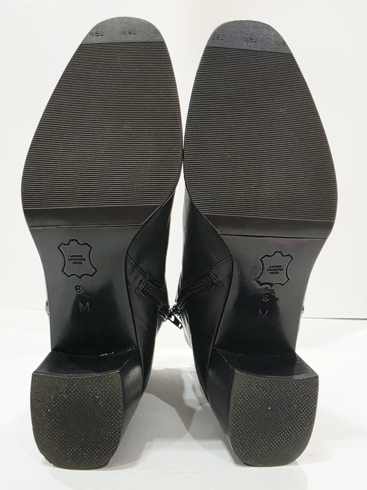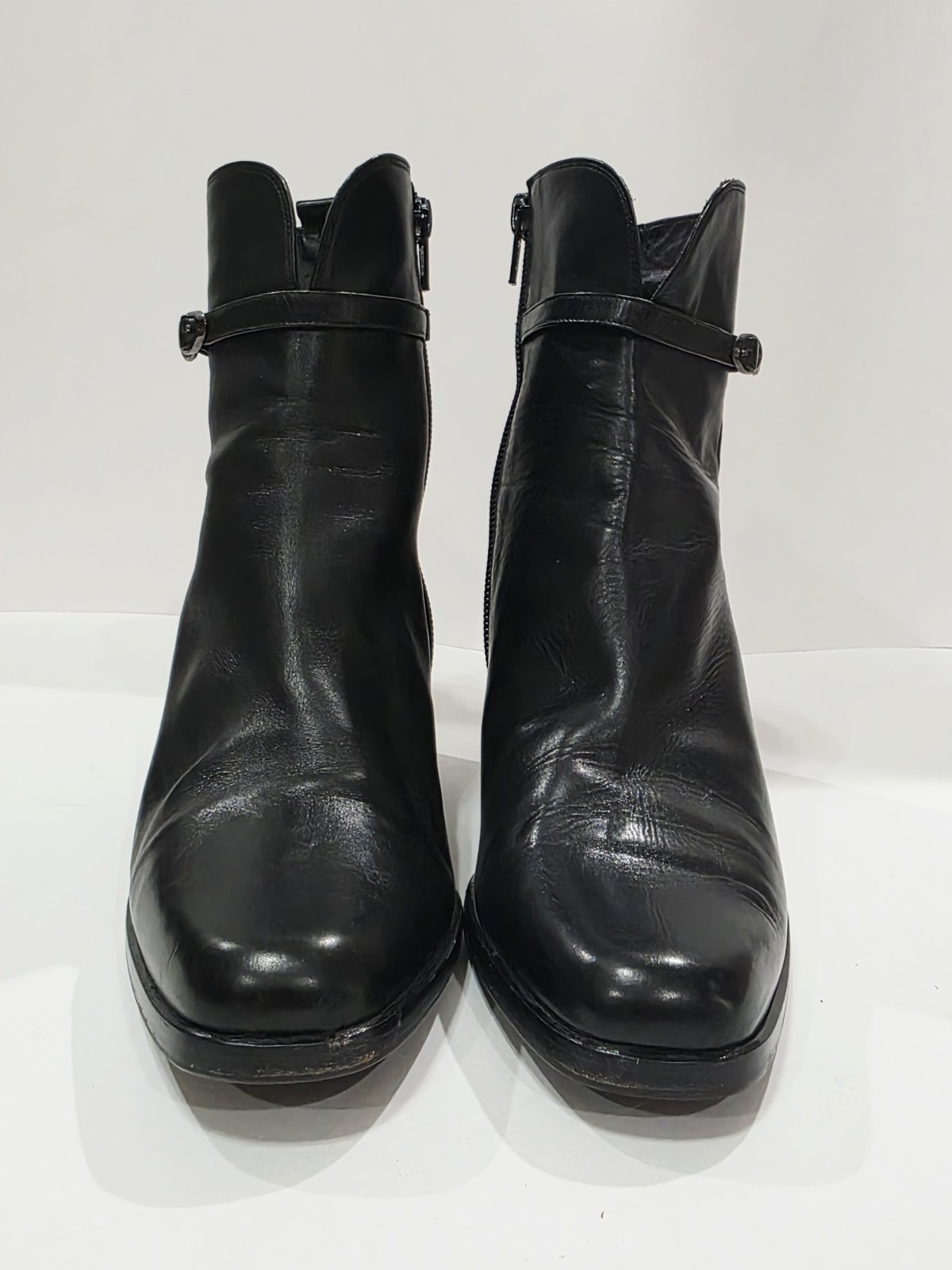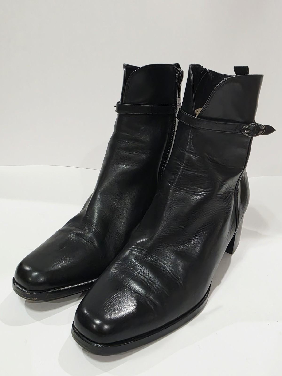 1 Used Pair No Box By Bally FERINA Black Leather Ankle Boot Zipper Charcoal Buckle Women 6 M Used RARE! (Box #22)
