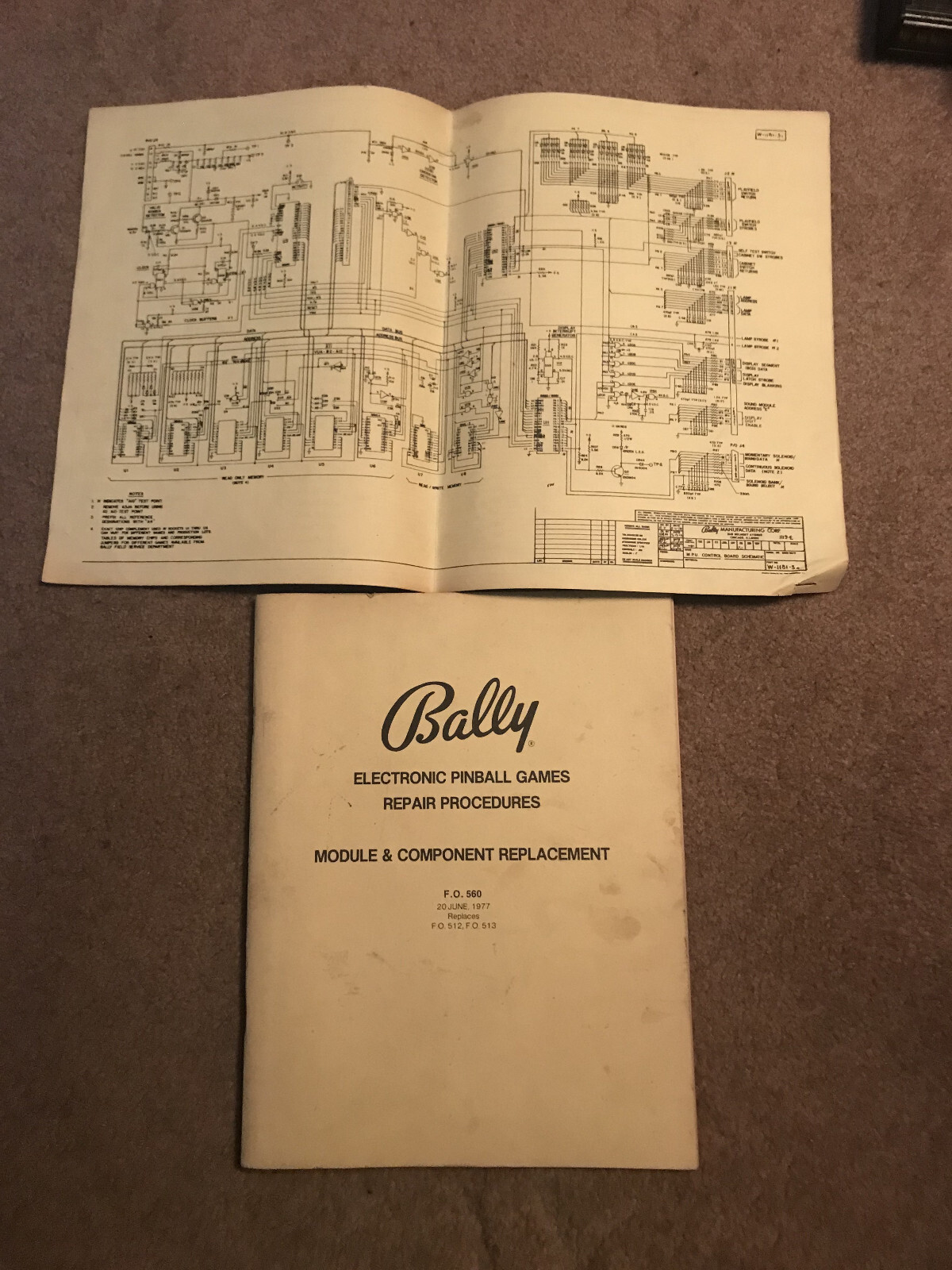 Complete 1977 Bally electronic pinball games repair procedures, module and component replacement manual. F.O. 560 20 June 1977.
