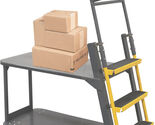 This cart has two large shelves for transporting a variety of merchandise. The ladder portion has a spring loaded device which secures the ladder to the floor when climbing and retracts for easy maneuvering. The cart is equipped with 4 casters, 2 swivel and 2 rigid for effortless turning and moving. Durable powder coated gray with yellow steps.