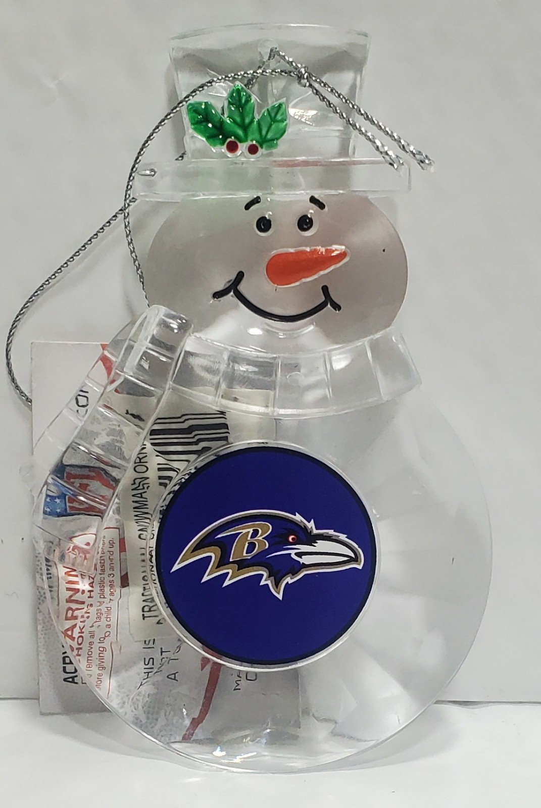 Officially Licensed Baltimore Ravens Acrylic Snowman Ornament.