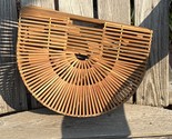 Natural Bamboo Wood Basket Purse Tiki Hand Bag Half Moon Tote Cage