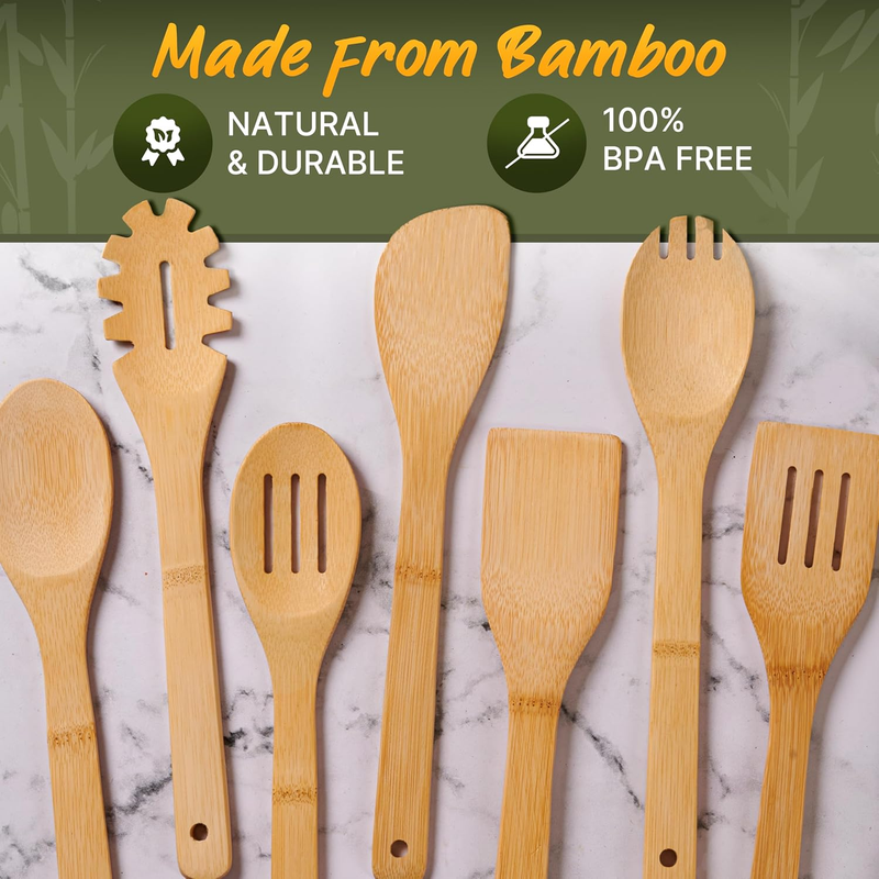 - Bamboo Wooden Cooking Utensil Set - 7 Pcs Heat Resistant Kitchen Tools