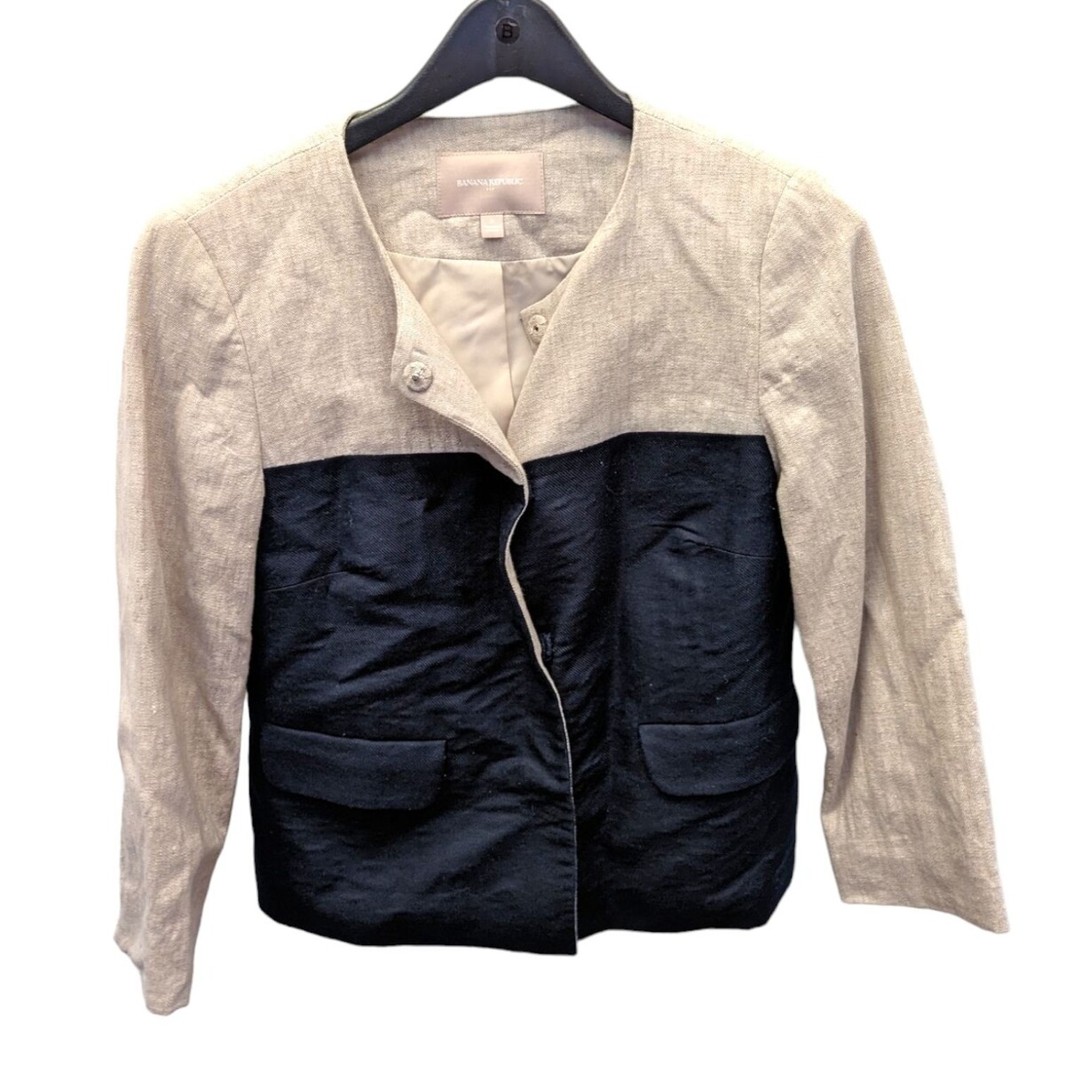 - Banana Republic Beige Navy Linen Button Up Lined Blazer Jacket Size 2