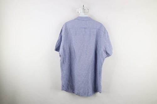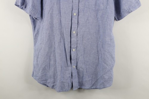 - Banana Republic Mens XL Slim Fit Chambray Linen Short Sleeve Button Shirt Blue