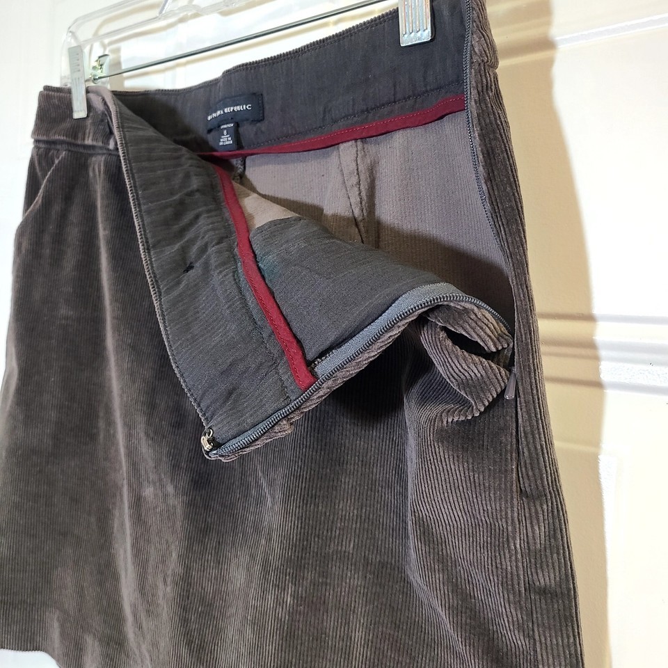 - Banana Republic Skirt Mini Corduroy Gray Stretch Pockets Womens Size 6 Side Zip