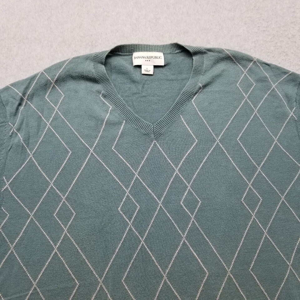 - Banana Republic Sweater Mens Large Green Pullover V Neck Cotton Lightweight