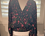 Banana Republic Womens Satin Wrap Top Long Sleeves Black & Pink Floral, Med