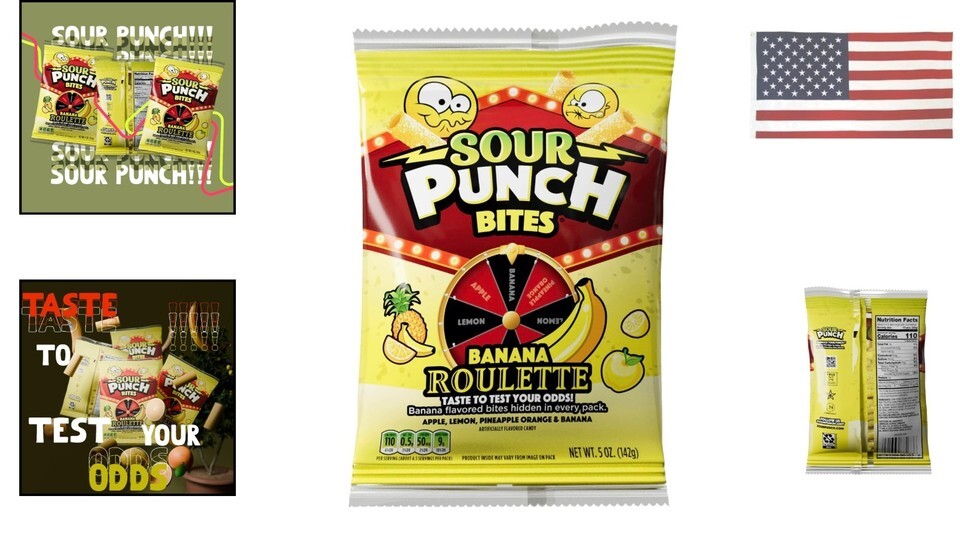 - Banana Roulette Chewy Candy, Sweet & Sour Assorted Fruit Flavors, 5 oz Bag