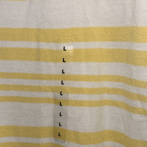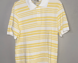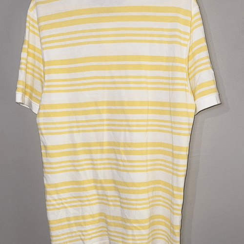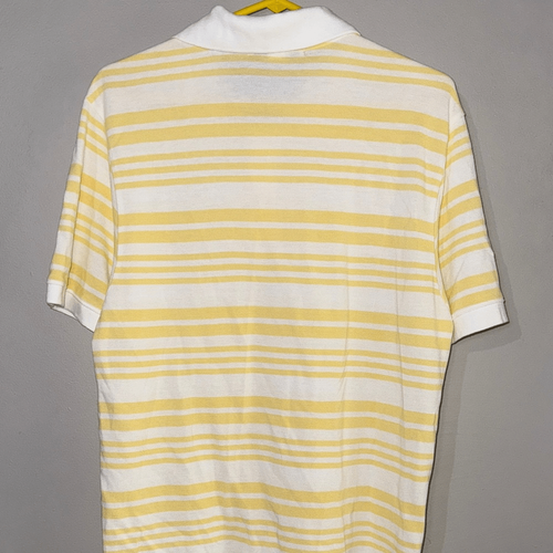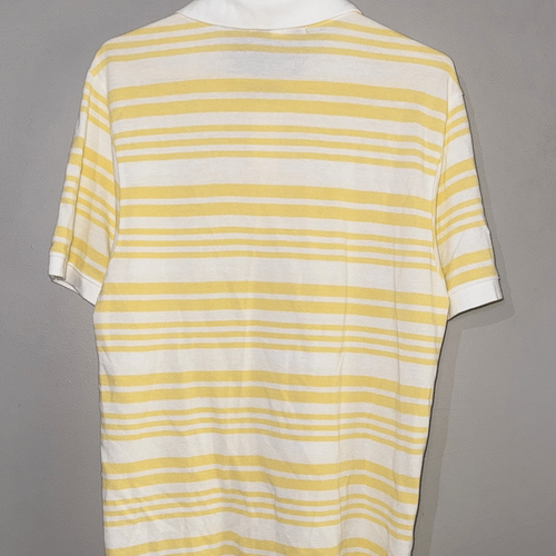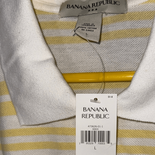 Classic Banana Republic polo with white and yellow stripes. Perfect blend of style and comfort.