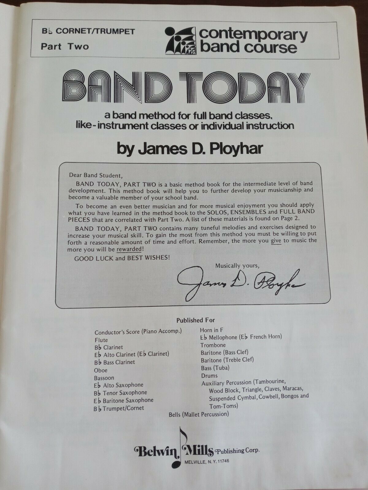 - Band Today Part 2 B-Flat Cornet (Trumpet), by James D. Ployhar