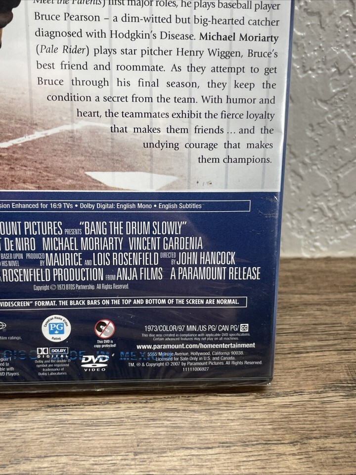 - Bang the Drum Slowly DVD Baseball Movie Robert DeNiro Michael Moriarty KG