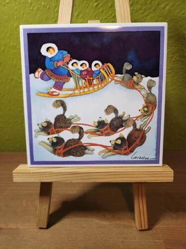 Barbara Lavallee VTG 2008 Signed Trivet Tile SLED DOGS