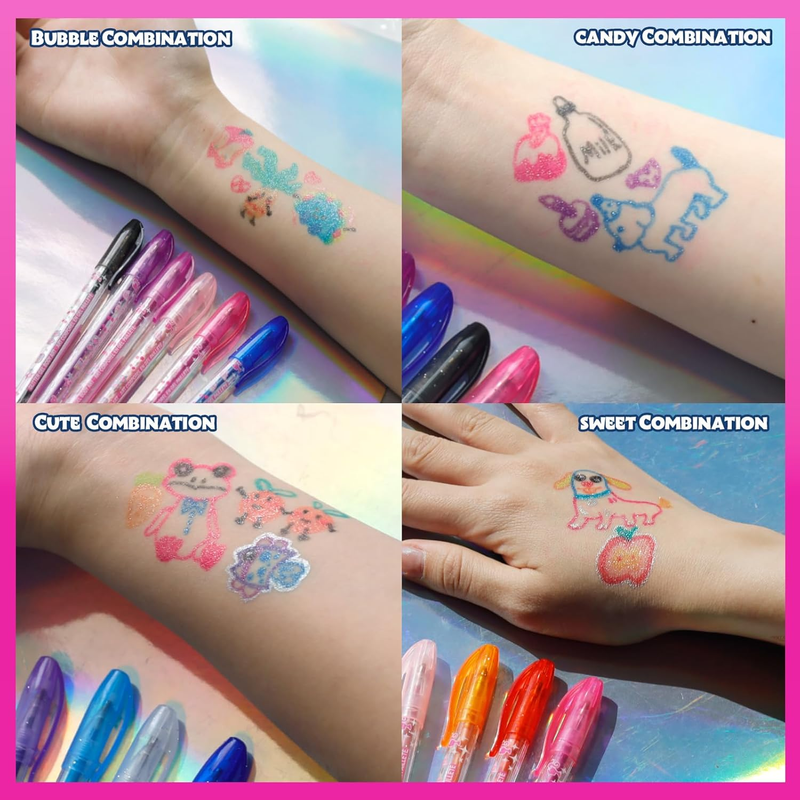 Versatile Creative Uses: Ideal for a wide range of creative endeavors, these pens are not just for paper. Safely apply them to your skin to add a temporary sparkle to your look for parties, festivals, or any occasion where you want to stand out.