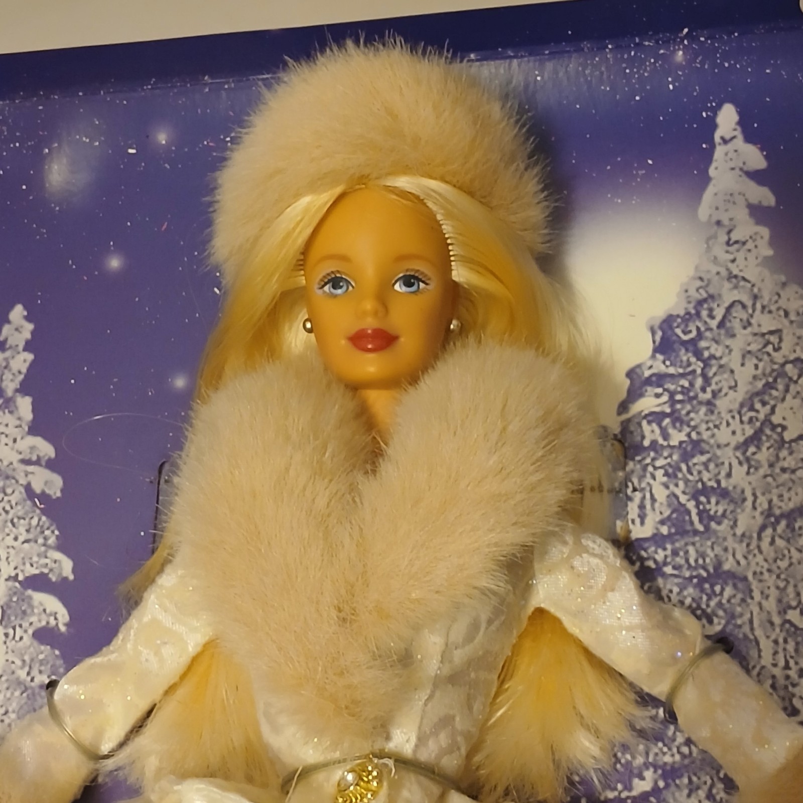 This listing is for a Collector's Edition Winter Evening Barbie doll. This doll features Barbie wearing an elegant winter dress with simulated fur at the cuffs and a fake fur hat. The doll is very good and is missing the box. It was made in 1998 and is recommended for ages 3 and older.