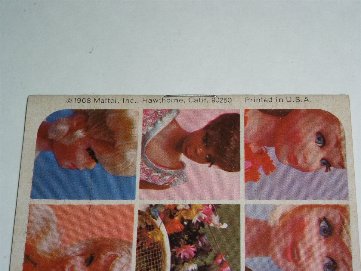 Measures 4 1/2" X 3". Dated 1968 by Mattel. 14 very nostalgic color pages of fashions and accessories for Barbie and others, with a picture of the most sought after, "Julia". A terrific item for the collector.