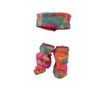 The Barbie Scrunched Seam Leg Warmers and Headband doll accessories in pink and blue watercolor design are part of the Barbie product line by Mattel. Designed for girl dolls, this set includes a headband and leg warmers, perfect for adding a trendy touch to your Barbie's outfit. With a time period manufactured between 1990-1999, these accessories are a charming addition to any Barbie enthusiast's collectionly.