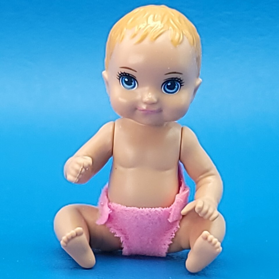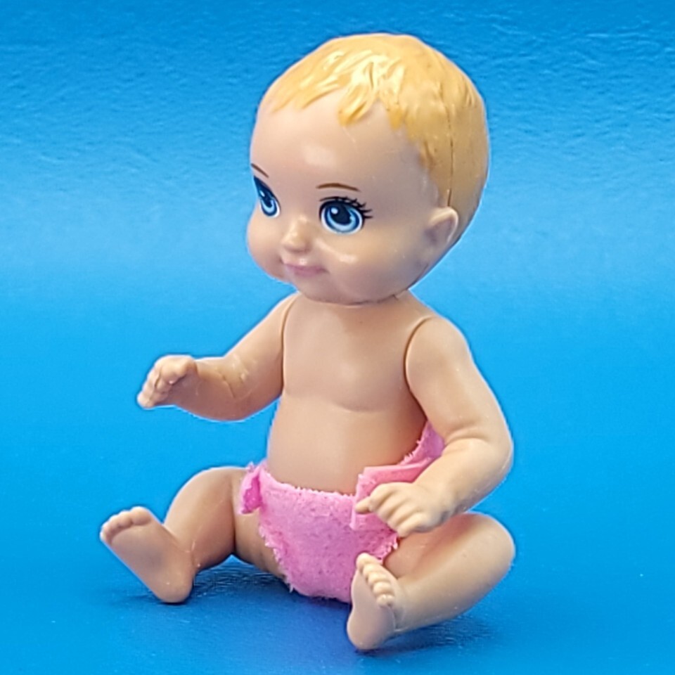 Bring adorable playtime fun to your Barbie world with this Skipper?s Babysitters Inc. blonde baby in a cute pink bunny costume. This tiny figure is perfect for completing sets, replacing lost pieces, or adding charm to your dollhouse scenes. A great find for collectors and kids!